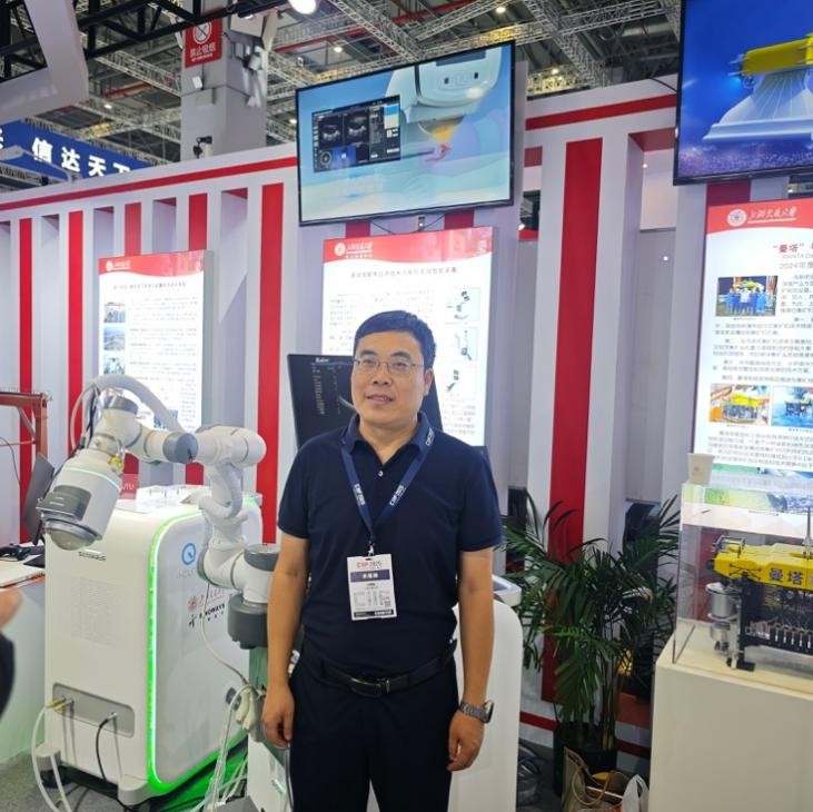 中企视讯(编辑 周天琪)9月23日至27日,以“工业新质,智造无界”的主题的第25届中国国际工业博览会在上海国家会展中心盛大举行。在上海交通大学的联合展台前,“相控阵列聚焦超声治疗系统”(下称“USg-PHIFU系统”)及高强度聚焦超声治疗机器人的动态演示吸引了大批观众驻足。作为该系统的核心研发者之一,上海交通大学生物医学工程学院副院长白景峰教授接受专访,详细介绍了其团队在相控阵聚焦超声治疗领域的重大突破,并分享了团队研发该技术及推动其实现临床转化的过程。