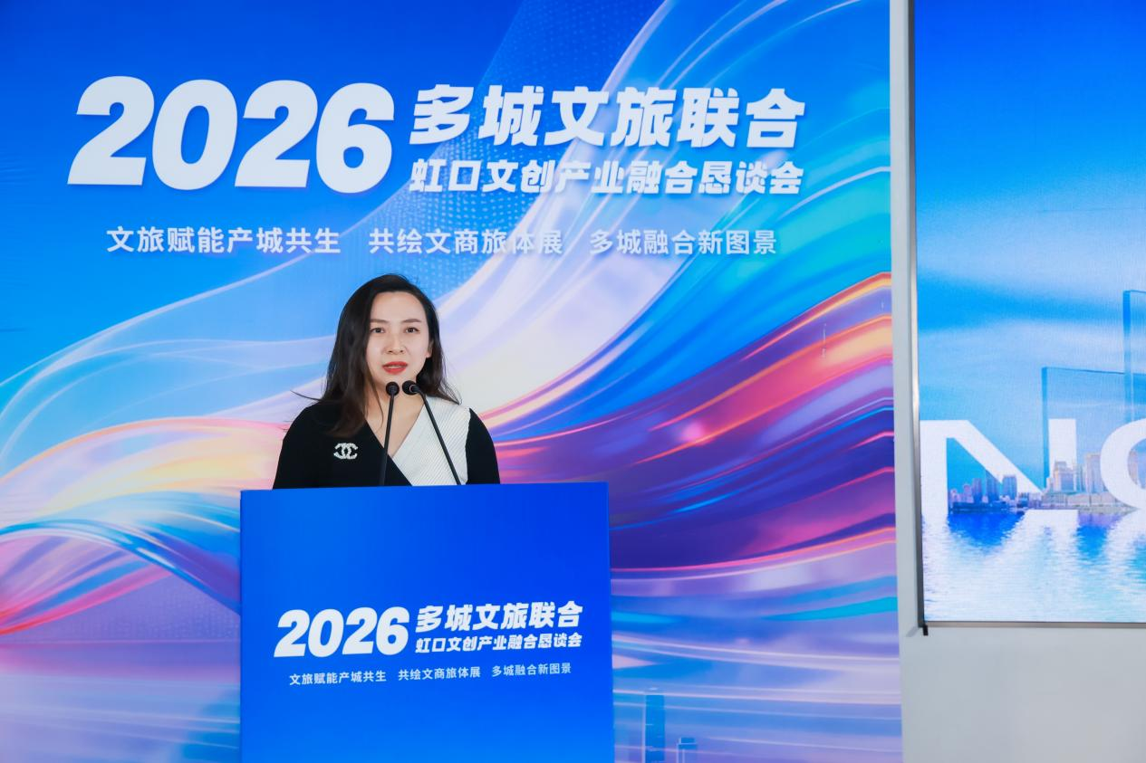 上海市虹口区文化创意产业发展促进会秘书长王小明在致辞中表示,虹口作为上海文化的重要发源地,全面推动“文商旅体展”集聚融合发展。她指出,过去5年,虹口文促会助力虹口文创产业保持每年10%以上的经济增速,持续3年位列上海市文创产业经济增幅前三甲,今年一季度更实现经济增幅增量90%的营收开门红,位列全市第一。目前,虹口市级文创园区上榜数量位居全市第二,这既是全区文创企业共同努力的成果,也是虹口文创产业持续优化的有力印证。虹口文促会始终致力于“搭平台、聚资源、促合作、优生态”,以此次大会为契机,将搭建跨区域资源联动与产业协作平台,探索文创产业融合发展新路径,共建产业发展平台。