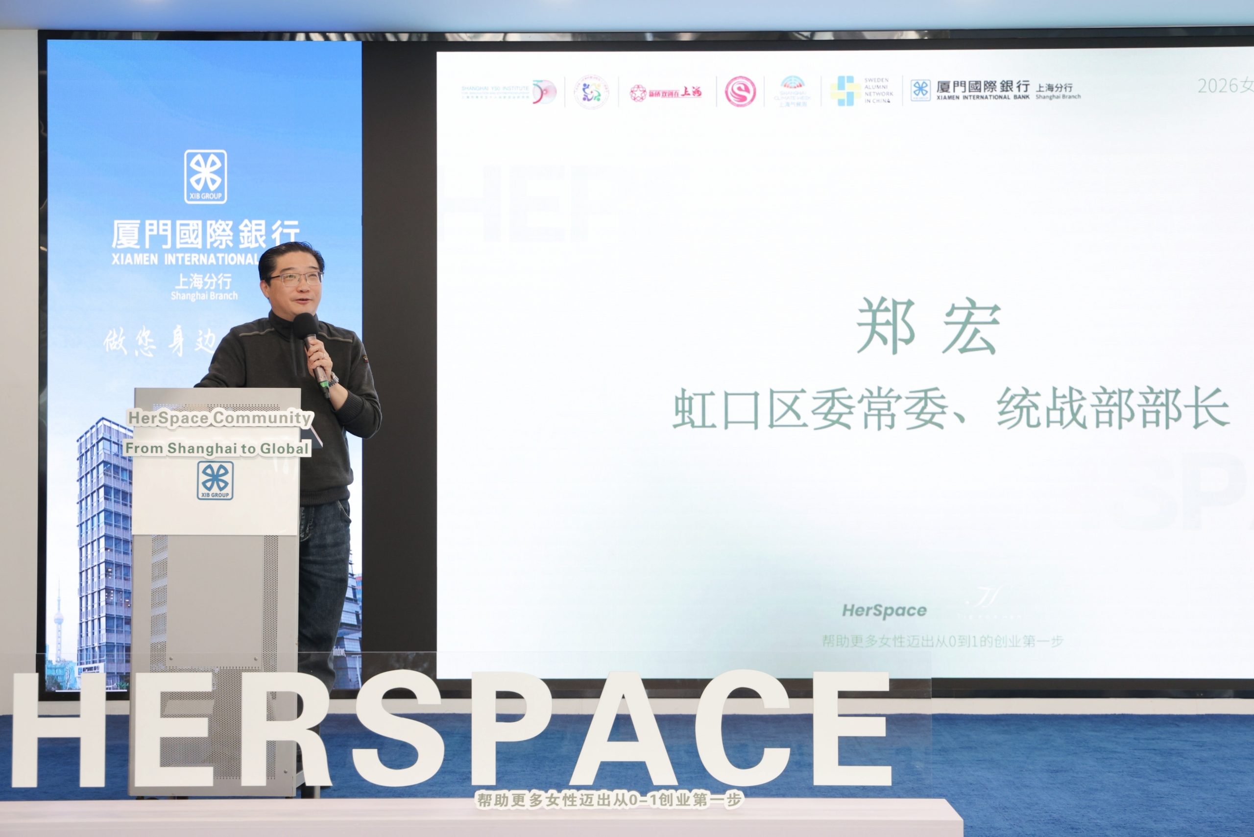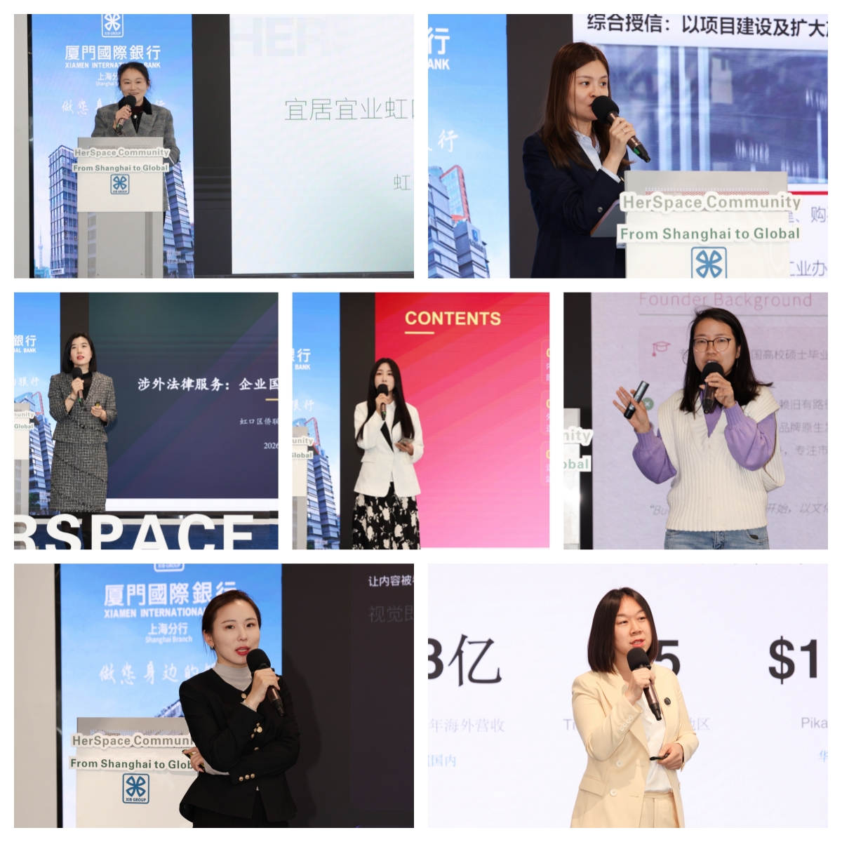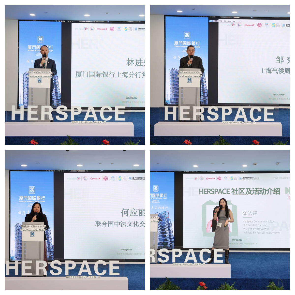 厦门国际银行上海分行党委副书记、副行长林进强,上海气候周执委会联席主任邹荣,联合国中法文化交流中心大使何应丽,HerSpace Community发起人陈洁琰先后致辞,希望广大女性创业者自身发展与区域经济、社会、文化、生态文明建设深度融合,共同参与绘就“上海北外滩,都市新标杆”蓝图。