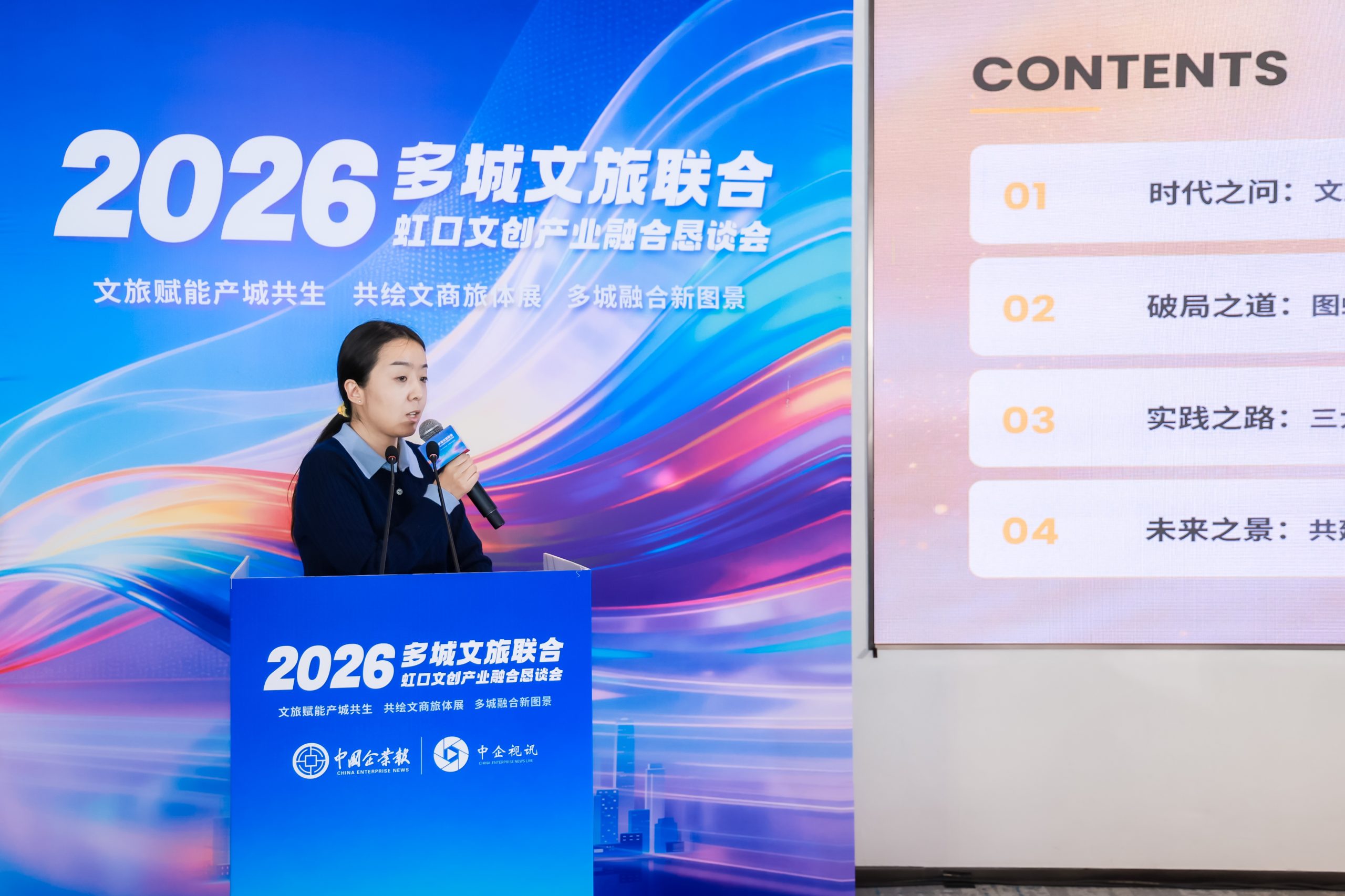 中企视讯(编辑 周天琪)3月20日上午,2026多城文旅联合·虹口文创产业融合恳谈会分论坛“科技焕新——文旅与产业创新实践”在上海虹口北外滩举行。本次大会由中国企业报中企视讯主办,上海市虹口区文化和旅游局、虹口区文化创意产业发展促进会指导,上海市虹口区文化和旅游协会、上海文旅产业研究院、中企产经研究院协办,分论坛聚焦科技赋能文旅产业转型升级,汇聚人工智能、机器人、数字文化、非遗传承等领域的行业专家与创新企业代表,共探科技与文旅深度融合的新路径。
