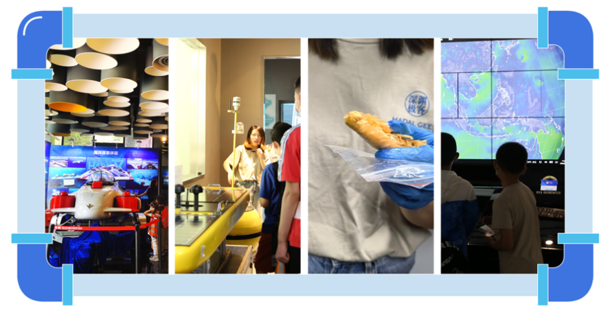 进入科普研学基地,双方首先参观了百米商用载人潜水器真机、万米海沟探测装备、浮标及不同海洋装备模型。接着工作人员从菌种库储藏室的冷冻箱里拿出马里亚纳海沟采集的钩虾样本向大家展示。在彩虹鱼海洋大数据中心,科研人员通过各种海洋装备搜集的数据,如洋流、风向等,生成可视化图像,实现“智能海洋物联网+大数据”为涉海机构与产业提供服务与支持。